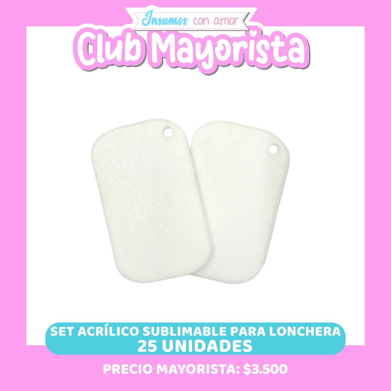 25 SET ACRÍLICO SUBLIMABLE PARA LONCHERA - CLUB MAYORISTA