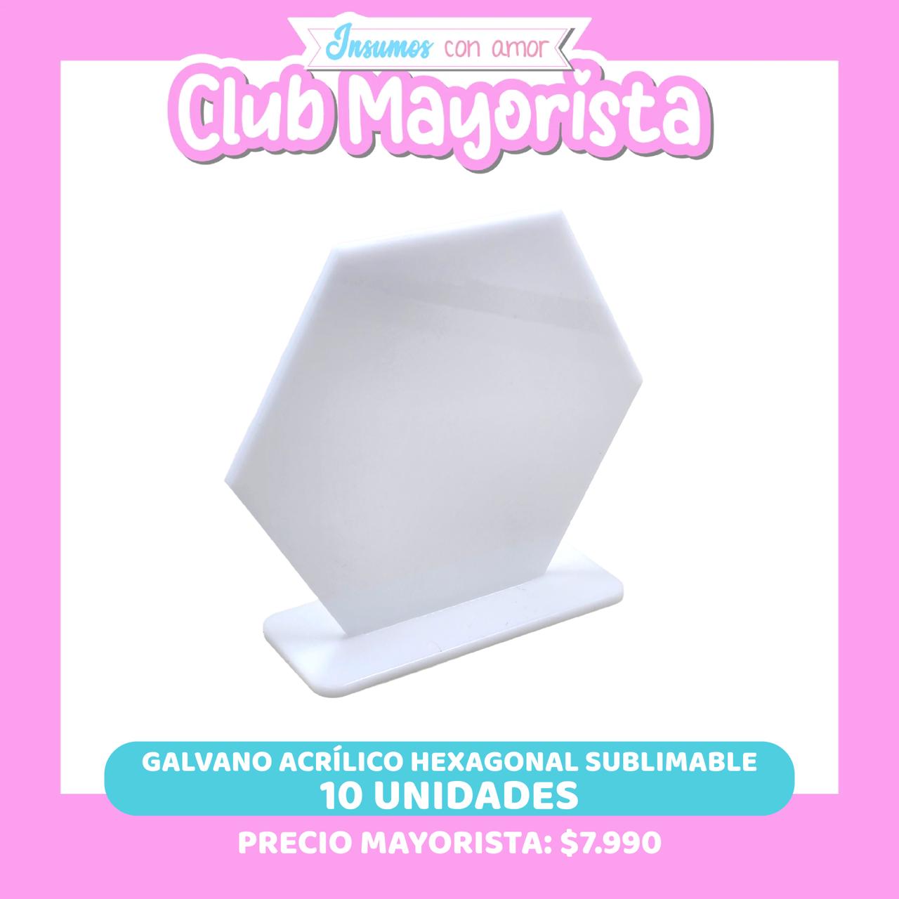10 UNIDADES GALVANO HEXAGONAL DE ACRÍLICO SUBLIMABLE - CLUB MAYORISTA