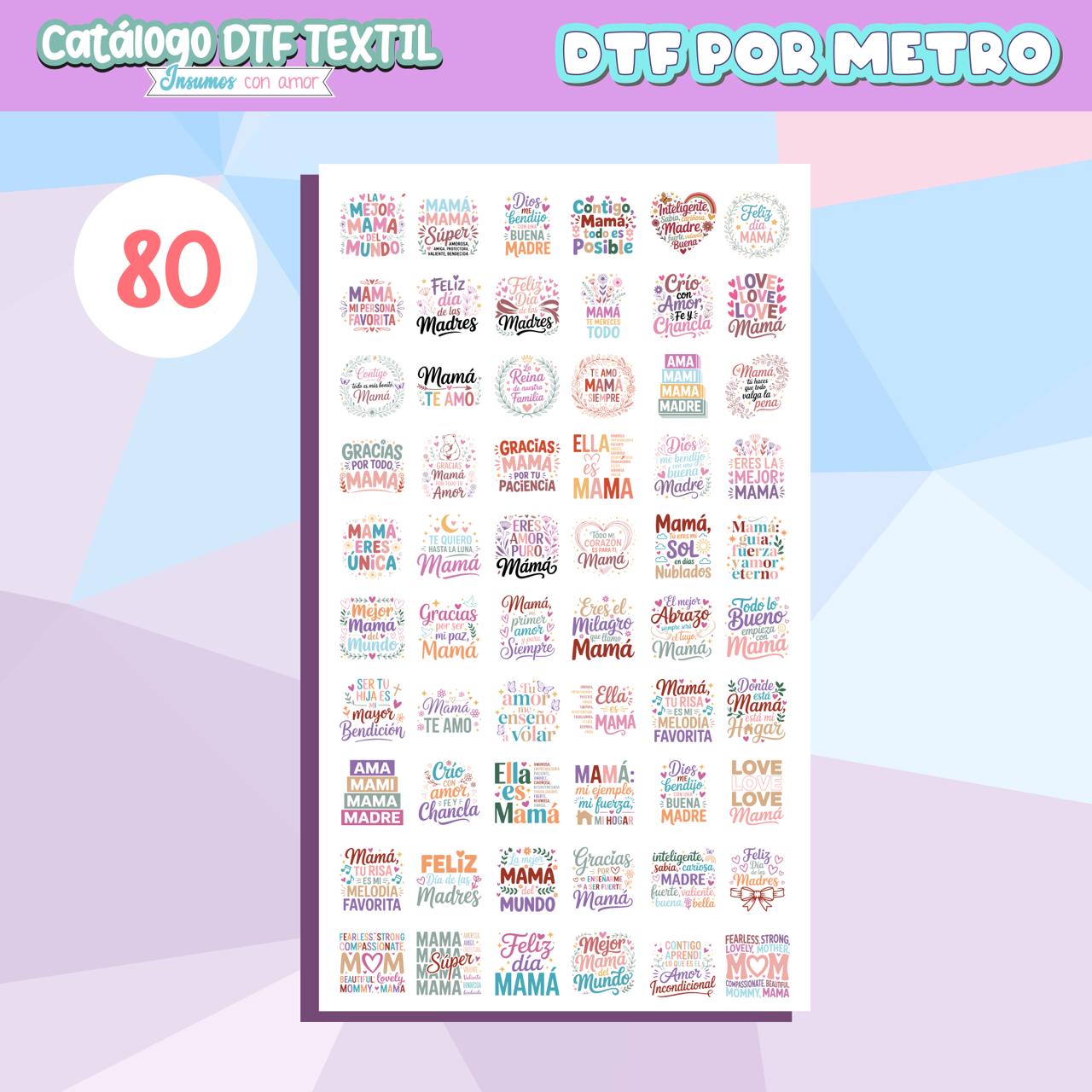 DTF TEXTIL POR METRO - PAÑO 80 (FRASES MAMÁ JOYEROS 8 CM.)